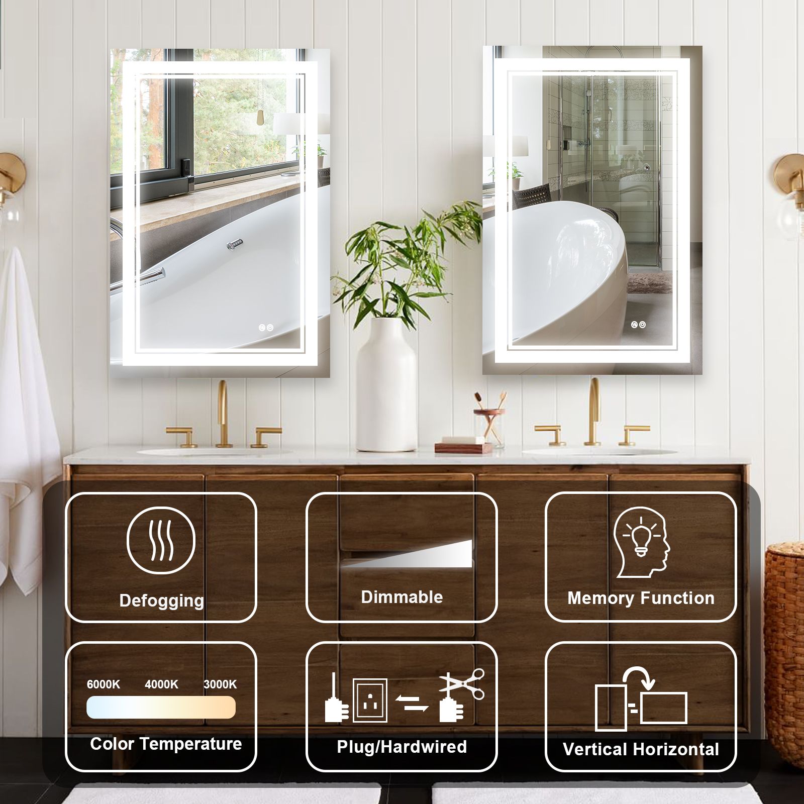 7 Size LED Bathroom Mirror Wall Mounted Vanity Mirror Anti-Fog Mirror Dimmable Lights with Touch Switch(Horizontal/Vertical) 7 Size LED Bathroom Mirror Wall Mounted Vanity Mirror Anti-Fog Mirror Dimmable Lights with Touch Switch(Horizontal/Vertical) 7 Size LED Bathroom Mirror Wall Mounted Vanity Mirror Anti-Fog Mirror Dimmable Lights with Touch Switch(Horizontal/Vertical)