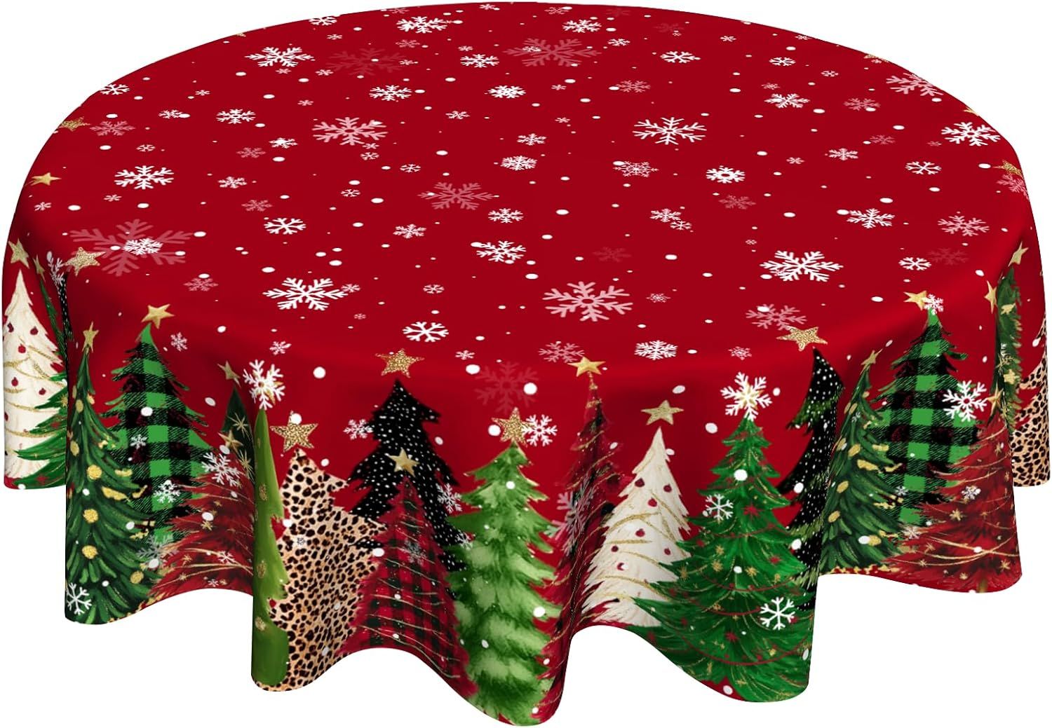 SIZE: Our merry christmas table cloth are round style with a diameter of 60 inches. Generally fit for medium-sized tablesFEATURES: Our christmas nativity round tablecloth is comfortable and can be washed and reused. It is printed with beautiful patterns, which can well decorate your table and give your table a new lookMATERIAL: Our red buffalo plaid 60 round tablecloth is made of high quality fabric, the main component is polyester fiber. It is soft and comfortable to touch, with rich and beautiful patterns, adding color to your lifeFUNCTION: This christmas star round table cloths 60 inch is suitable for any indoor and outdoor dining occasions for decorative or functional purposes (cafe, dinner, brunch, buffet, picnic, weddings, parties, etc.) and for all round tables (coffee table, dining table, farm table, etc.)WASHING INSTRUCTION: This xmas tree table cloths is easy to clean, both hand and machine washable at room temperature. Please do not bleach and sunlight, low temperature ironing